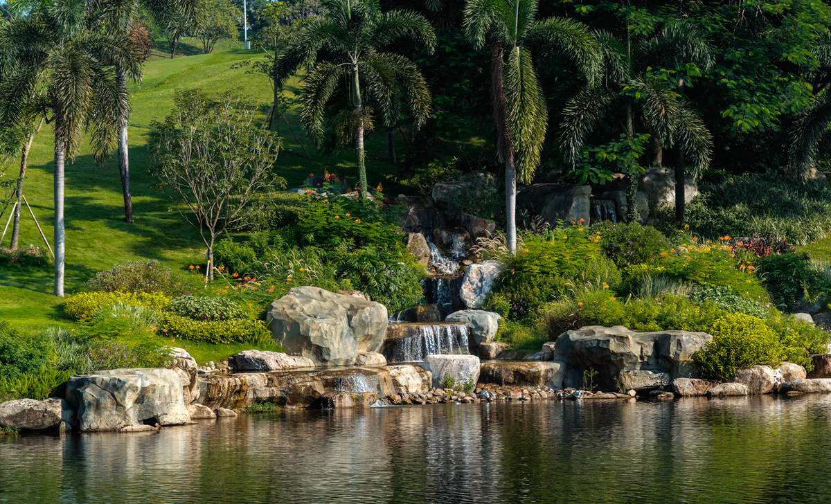 坐落于白云山麓湖公園內的廣州華美麓湖國際高爾夫俱樂部(前身為廣州麓湖高爾夫球鄉(xiāng)村俱樂部),猶如繁華都市中的一顆“綠寶石”。俱樂部由華美集團與保利發(fā)展合作運營,是廣州市中心唯一擁有18洞72標準桿高爾夫球場的高端場所。 俱樂部整體升級改造以打造大灣區(qū)高端運動場為目標,致力塑造廣州市高質量發(fā)展的新城市名片。普邦股份承接了俱樂部的園林改造工程,涵蓋園區(qū)整體景觀及局部球場區(qū)的改造和提升,圍繞“提升場地品質、貼合運營需求、融合自然與人文”核心目標推進,重塑“融新泉”“東坡泉”等標志性景觀,為俱樂部呈現(xiàn)兼具功能性與觀賞性的園林環(huán)境。